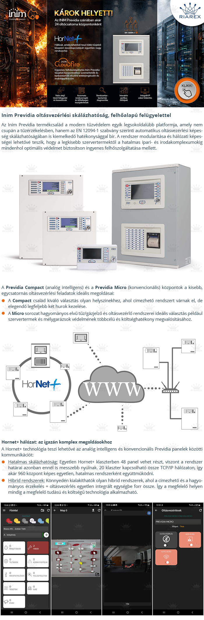 Inim Previdia oltásvezérlési skálázhatóság, felhőalapú felügyelettel