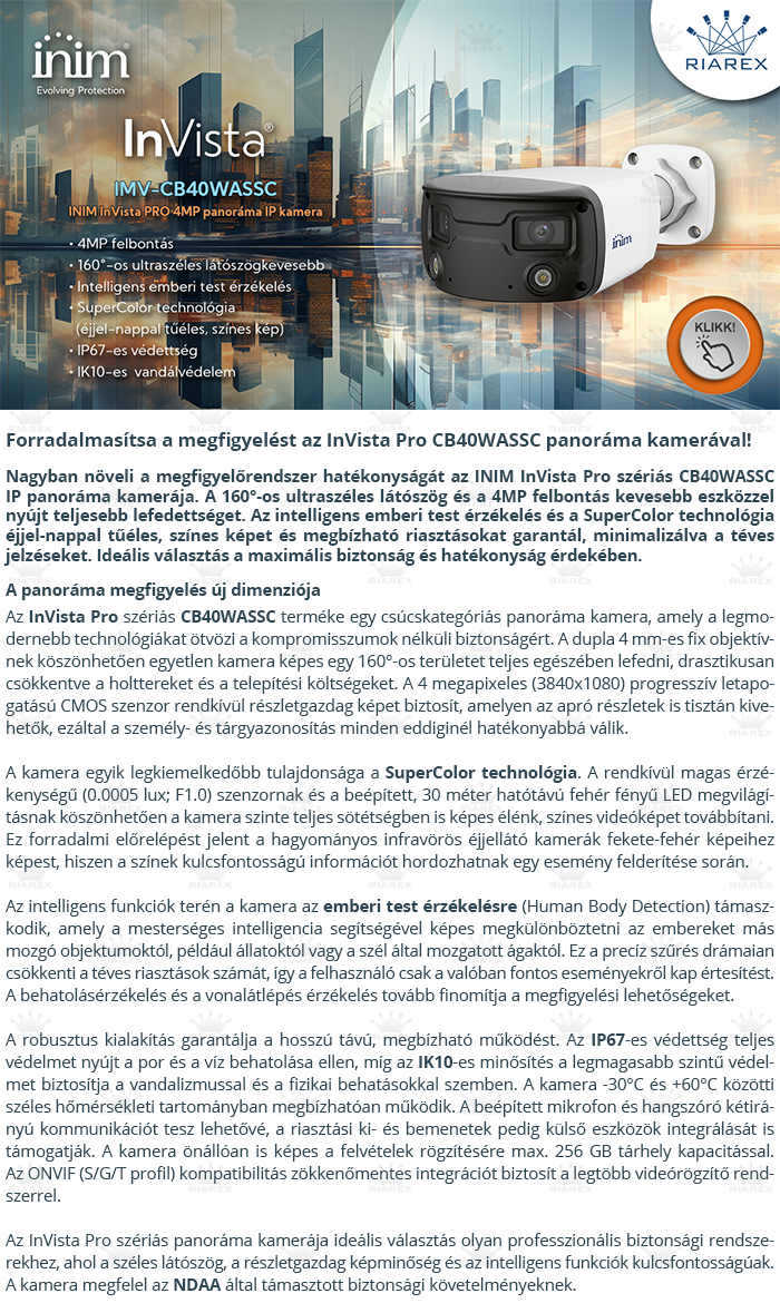 Forradalmasítsa a megfigyelést az InVista Pro CB40WASSC panoráma kamerával!