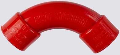 90°-os kanyar, 25mm külső átmérővel (nagy sugár), piros ABS kivitelben EN 61386-1 jóváhagyással