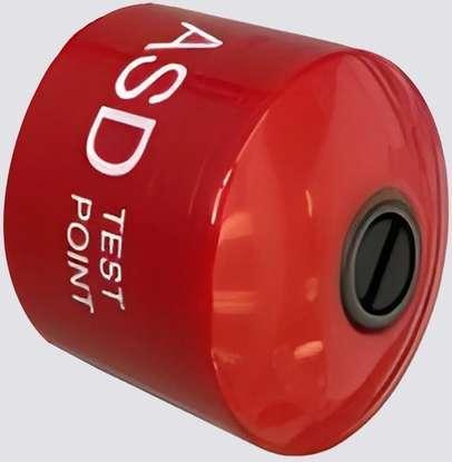 Tesztelő pont piros ABS 25mm átmérővel. Olyan furat, amely a rendszer normál működése során zárva marad, és csak a tesztelés során nyitják ki.